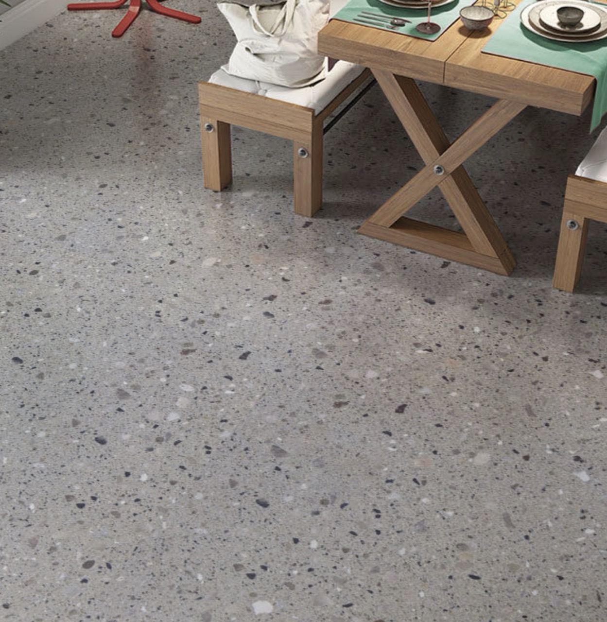 Venetian Terrazzo suits any interior design, whether classical, modern, or contemporary. Unlike mosaic, Terrazzo creates a smooth, seamless surface that adds warmth and softness to any room, shining like an endless carpet of light.